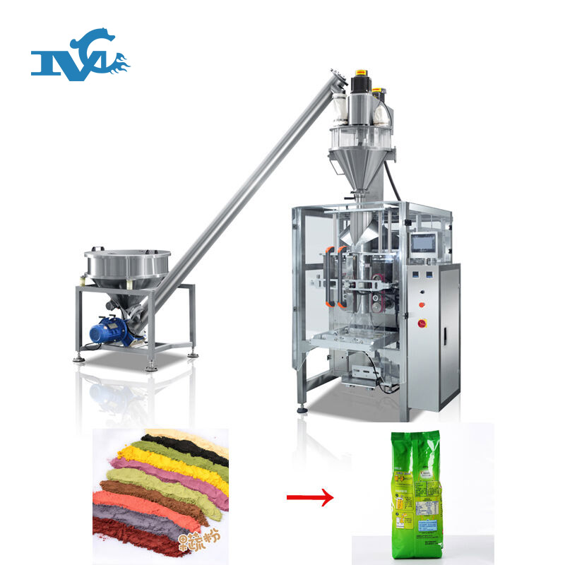果蔬粉全自動包裝機是由一臺5000D/5000B/7300B/1100立式充填包裝機、組合秤(或CJS2000-F稱量機 )和DT2垂直斗式提升機組成,集稱量、制袋、折邊、充填、封口、打印、沖孔、計數于一體,采用伺服電機同步帶拉膜。控制元器件均采用國際名牌產品,性能可能。橫封縱封采用氣動,動 作平穩可靠。先進的設計保證了該機調整、操作、維修均十分方便。